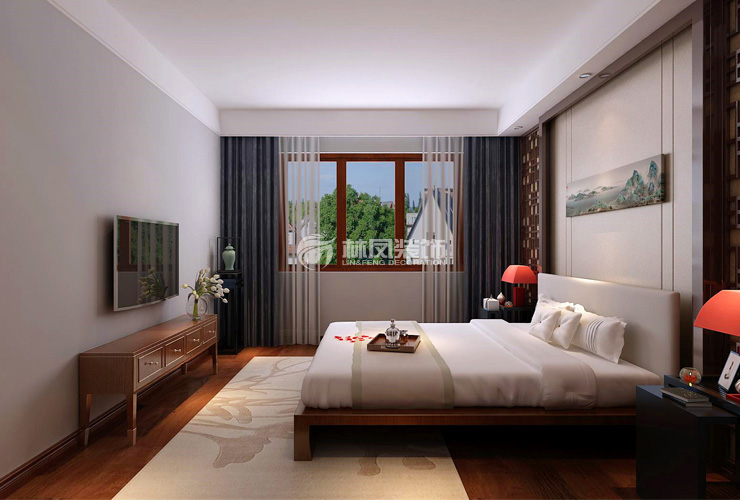 (圖為新中式風格地臺床設計裝修效果圖)