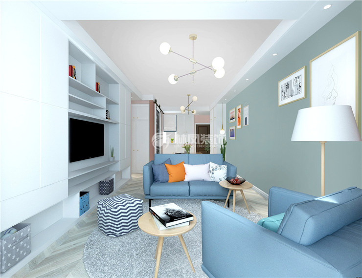 (圖為林鳳裝飾客廳藍色色彩搭配效果圖)
