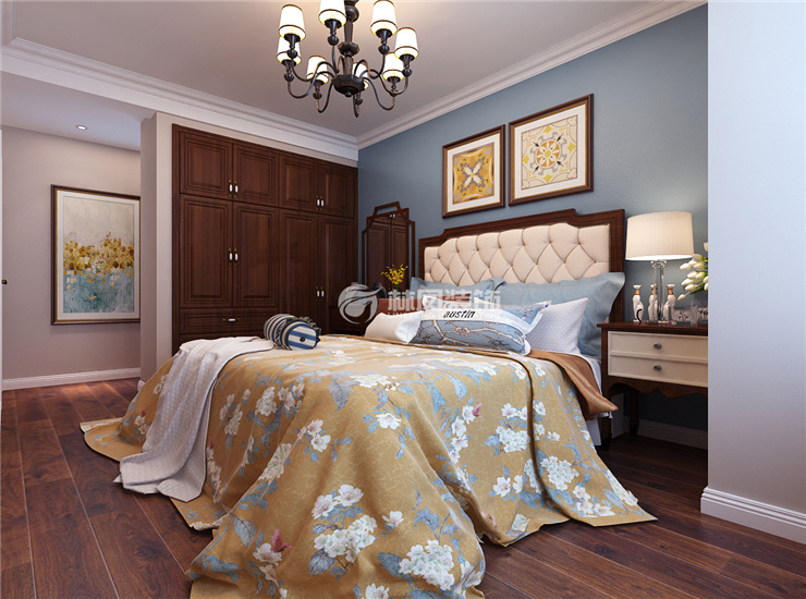 (圖為林鳳裝飾美式風(fēng)格臥室裝修效果圖)
