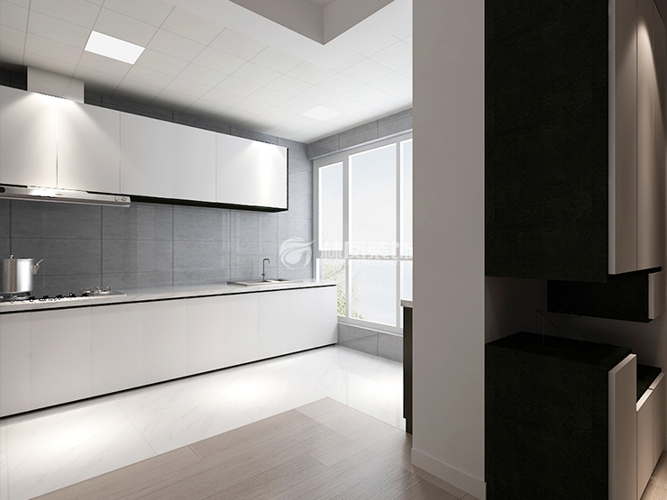 如果家里的廚房比較方正并稍稍有些偏長,在廚房裝修時可以選擇把廚房裝修成雙一字型廚房。這樣在炒菜做飯時就能左右兼顧,雙一字型廚房的靈活性和方便性都要比一字型有很大的提升。不過如果在雙一字型廚房盡頭沒有功能通道的話就會出現(xiàn)空間浪費(fèi)的情況。