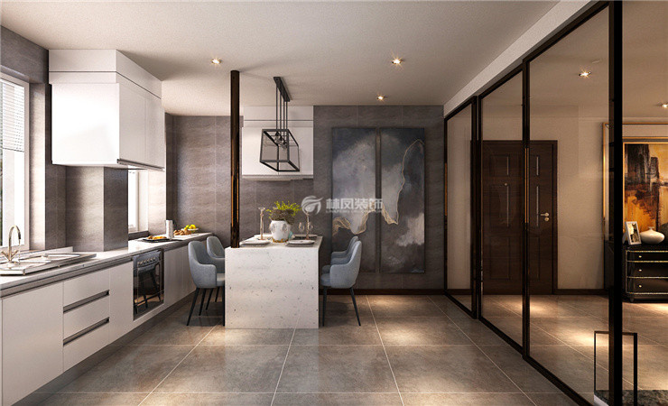 (圖為廚房安裝玻璃推拉門裝修效果圖)