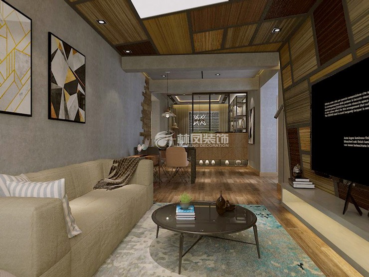 (圖為工業(yè)風(fēng)木紋磚裝修效果圖)