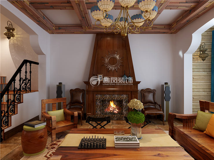 (圖為美式風(fēng)格弱化橫梁設(shè)計裝修效果圖)