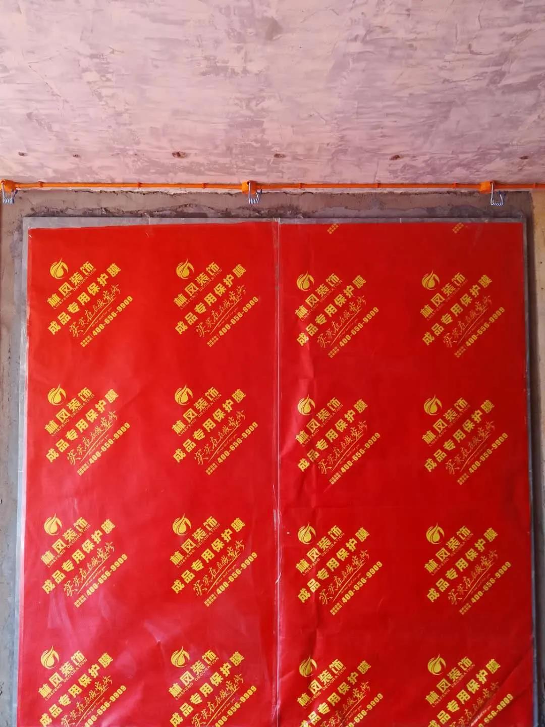 用專用的地膜將大理石背景墻保護起來,避免后期施工遭到破壞和劃傷。