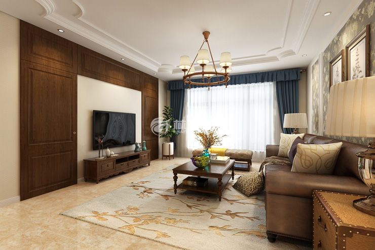 本案的客廳美式純皮頭沙發(fā),搭配質地溫馨的仿古地磚以及電視背景墻的護墻板,將美式帶入家中,其他吊棚及布局還偏向簡約,讓業(yè)主真正實現(xiàn)輕裝修重裝飾的完美體驗。