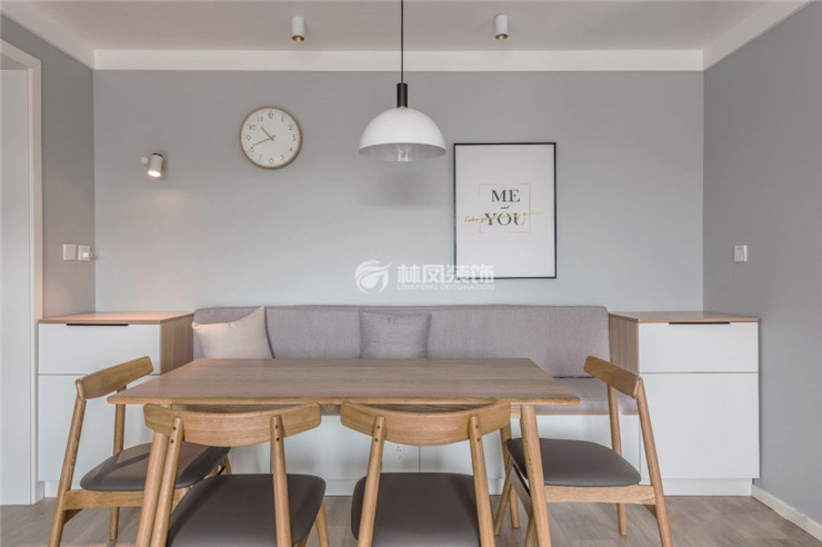 金石名悅89平2居室北歐風(fēng)格林鳳裝飾的餐廳在與業(yè)主溝通的時(shí)候業(yè)主提過(guò)想要卡座的樣式,所以餐廳采用吧臺(tái)的溫馨,同時(shí)不缺乏設(shè)計(jì)感。