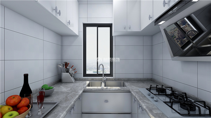 新湖青藍(lán)國(guó)際104平3居室現(xiàn)代風(fēng)格林鳳裝飾的廚房因?yàn)椴蛷d的區(qū)域與廚房距離相連緊密沒(méi)有太大的空間所以廚房的門(mén)采用了推拉門(mén)極大的提高了進(jìn)出廚房的空間,墻磚選的是與地面灰白色瓷磚相近的白色的瓷磚,灰色的地磚白色的墻磚搭配的使整個(gè)空間不會(huì)太昏暗,U型的白色櫥柜使廚房更顯得寬敞明亮。