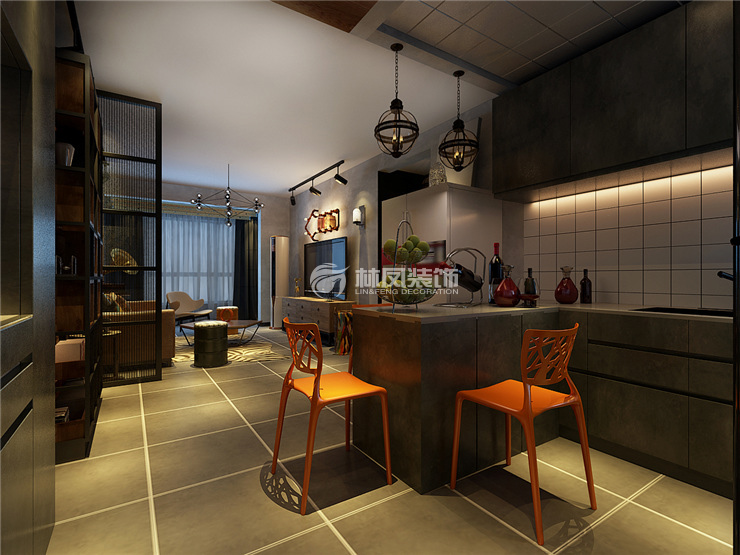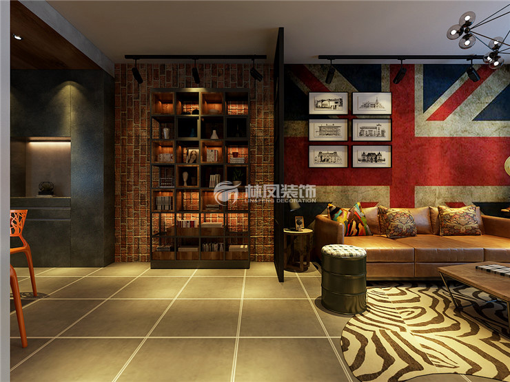 保利達翠提灣79平2居室工業(yè)風(fēng)林鳳裝飾的客廳背景墻是主要以燈飾的配飾為主。因為整個空間顏色偏深。著重在燈具上渲染亮度的色彩,達到一種協(xié)調(diào),灰色的地磚沉穩(wěn)大氣,加上米字的沙發(fā)背景,使得整個空間又顯得活潑。