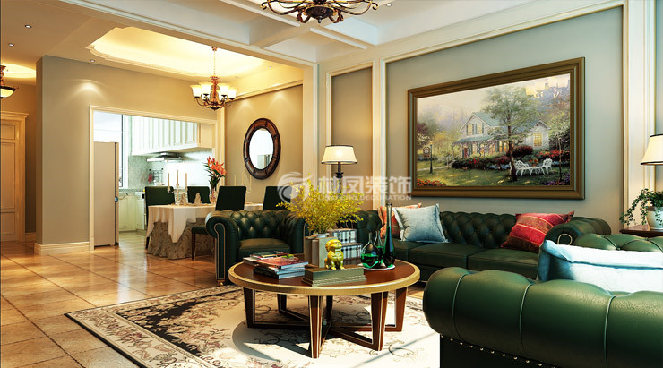設(shè)計(jì)理念:根據(jù)設(shè)計(jì)師與業(yè)主的溝通,發(fā)現(xiàn)業(yè)主喜歡的元素多為美式風(fēng)格元素,所以本案裝修風(fēng)格定位為美式風(fēng)格,地面為仿古磚,搭配深色原木家具。軟裝飾搭配絲絨,金銀色絲線等,飾品擺件以粗紋理的瓷器和多色彩的配飾。