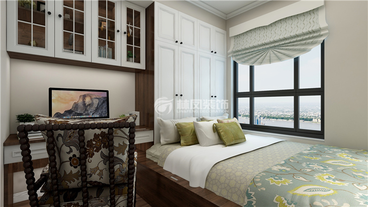 【主臥室說明】寬敞的臥室空間才是提高舒適度最好的選擇,燈具在空間內(nèi)起到了氣氛的點(diǎn)綴作用。臥室空間與客廳空間大體相似,但多出一些亮色,這些亮色會(huì)在清晨使人心情舒暢,緩解業(yè)主心情,空間內(nèi)不需太多裝飾性柜子。