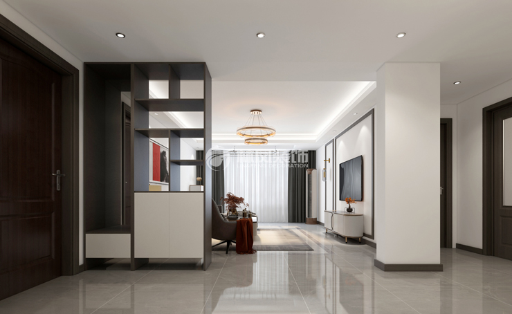 信達(dá)理想新城107平二室兩廳現(xiàn)代中式風(fēng)格林鳳裝飾的玄關(guān)