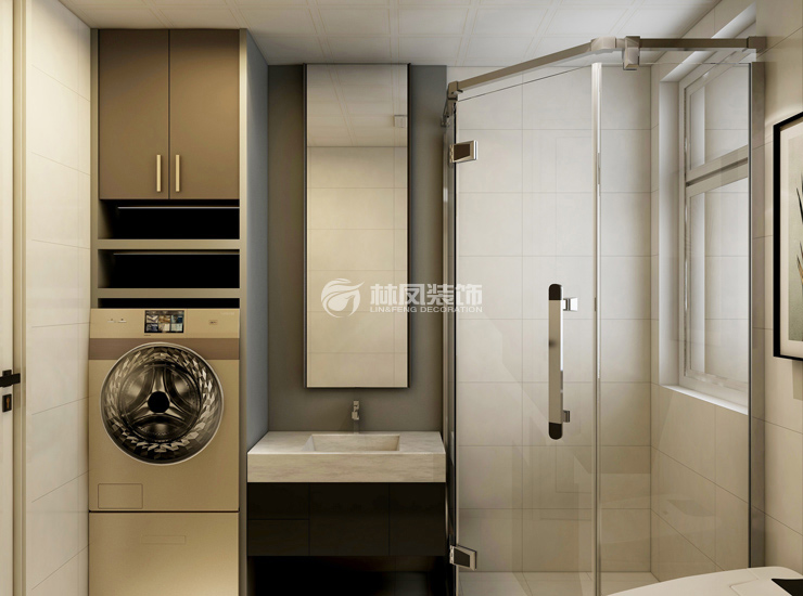 華潤(rùn)萬(wàn)象城139平四室兩廳港式輕奢風(fēng)格林鳳裝飾的衛(wèi)生間墻面采用酷酷的黑灰色理石,這里的洗面臺(tái)也是加長(zhǎng)的,這種功能與畫面感并存的空間,彰顯主人的大氣又不失穩(wěn)重的品位。