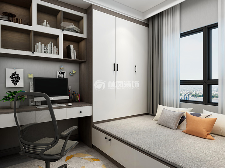 主臥是整個房子里色調(diào)最溫馨的空間,軟裝搭配為結(jié)婚的氛圍做了準備,床頭柜選擇了尺寸相對較小的北歐家具,做到了對稱均衡。平開門衣柜里側(cè)柜體做了通長的衣通桿,保證使用上的方便。