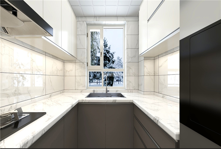 廚房為中廚封閉式空間,透明的玻璃門,可以通過玻璃門可以看到孩子在外的活動狀態(tài),家庭氛圍感濃郁。