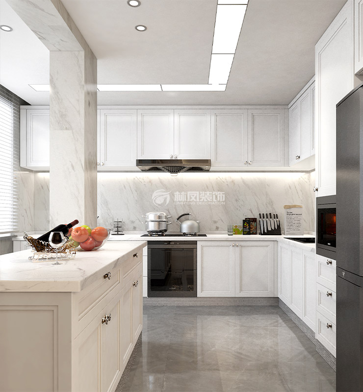廚房有承重柱的問題 所以在柱子中間用島臺優(yōu)化,讓室內(nèi)感覺更加完整 ,冰箱地位置是業(yè)主最喜歡的設(shè)計,讓廚房增加了很多空間,布局也更合理