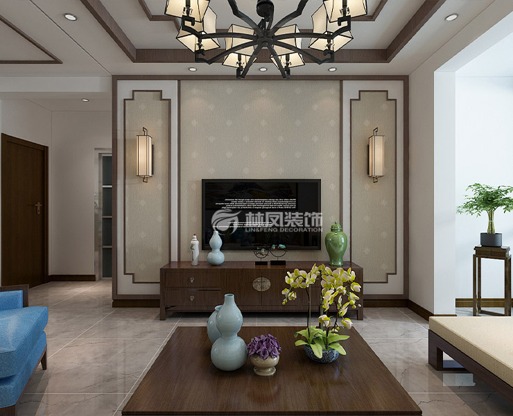 設(shè)計理念:本案采用中式的裝修風(fēng)格,大氣又不失典雅,追求圖案上的精致,多樣性的線條也可以讓空間顯得更有層次感。
