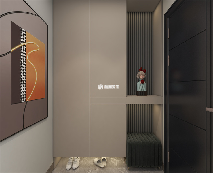 玄關(guān)說明:利用空間增加儲物功能,打造了一個簡約的溫馨小家。