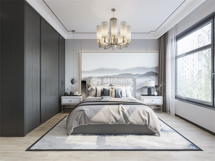 三室兩廳一廚兩衛(wèi),高層整體采用美式風格,色調以深色為主,體現美式的居家感和溫馨感。