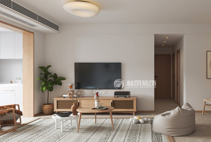 客廳說(shuō)明: 客廳背景原木顏色家具,白色墻底的元素,使空間整體設(shè)計(jì)感的材質(zhì)突出