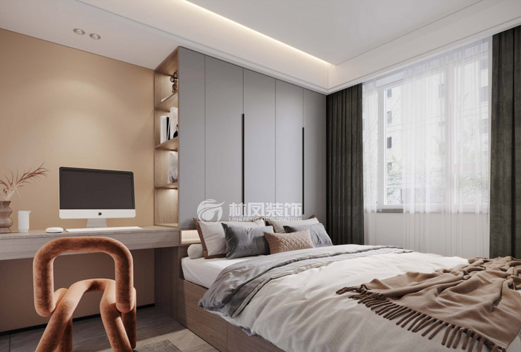 主臥室說(shuō)明:主臥不是常規(guī)得棚線,直接裸頂大線得形式,床頭木色搭配白色得完美相連,營(yíng)造極簡(jiǎn)效果。