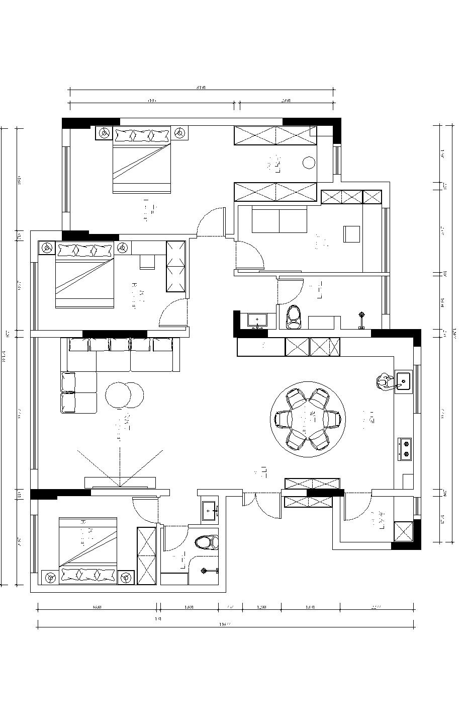 三室兩廳一廚兩衛(wèi),高層整體采用美式風(fēng)格,色調(diào)以深色為主,體現(xiàn)美式的居家感和溫馨感。