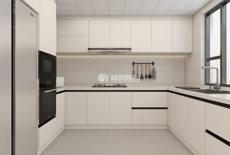 廚房說(shuō)明:廚房的現(xiàn)代感、高級(jí)感、科技感,都能讓烹飪成為創(chuàng)造藝術(shù)的過(guò)程。一體式的U型操作臺(tái),將備菜至炒菜的動(dòng)線規(guī)劃得清晰明了,幾乎不用太多的廚房經(jīng)驗(yàn),就能料理好一頓美味。