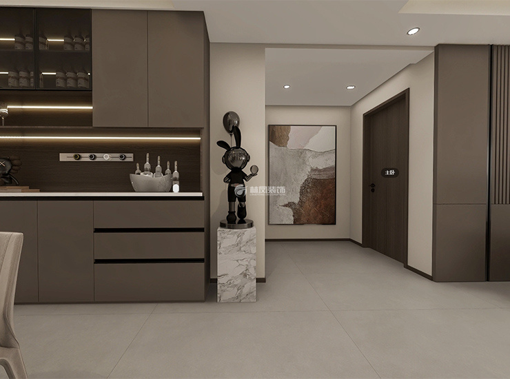 餐廳說明:餐桌兩側(cè)分別是酒柜和餐邊柜,功能性齊全,酒柜配合玻璃門,通透時(shí)尚。餐邊柜增加儲(chǔ)藏量,下面也嵌入地?zé)岱炙鳌?