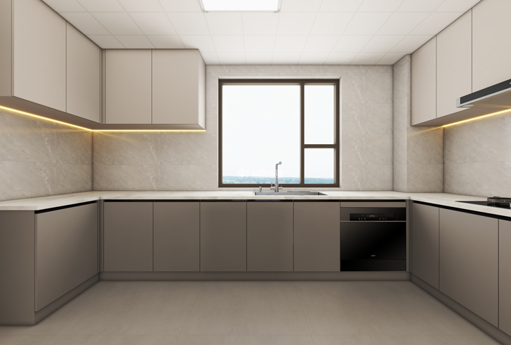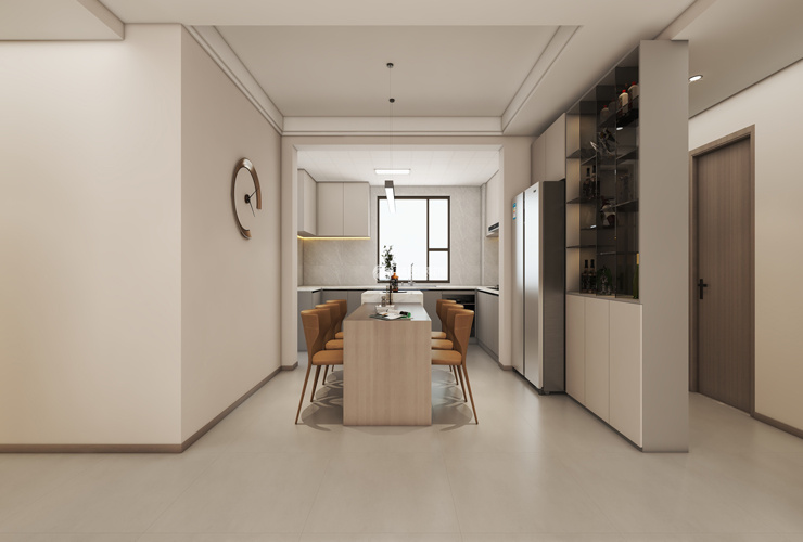 廚房說明:餐廳與廚房相連接,呈現(xiàn)出餐廳空間明亮寬大的效果,底柜設(shè)計(jì)表現(xiàn)簡(jiǎn)約風(fēng)格。現(xiàn)代風(fēng)餐廳設(shè)計(jì)旨在提供舒適、現(xiàn)代、實(shí)用的空間,同時(shí)注重環(huán)保和節(jié)能,利用色彩和材料營造出獨(dú)特的氛圍,滿足現(xiàn)代社會(huì)人們的生活需求,