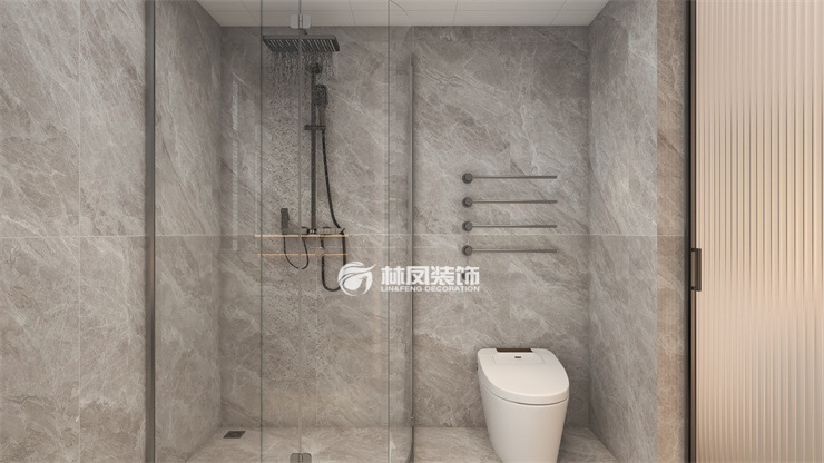 衛(wèi)生間說明:衛(wèi)生間采用暖色調(diào),配合T型浴屏,讓衛(wèi)生間更大氣,整體的色調(diào)給人一種溫馨的感覺。