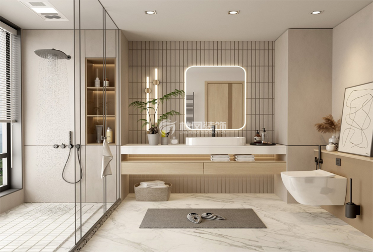 衛(wèi)生間說明:主衛(wèi)的鏡子使用了異型設(shè)計,看起來非常有觀賞性,后面采用線性燈,且淋浴房采用干濕分離,保障整個空間的干燥