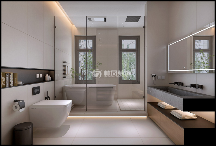 主衛(wèi)延續(xù)整體空間的簡約與大氣,充足置物臺面,滿足日常收納需求,讓空間更加整潔有序,手盆采用上下懸空的浴室柜造型,減少衛(wèi)生間的局促感