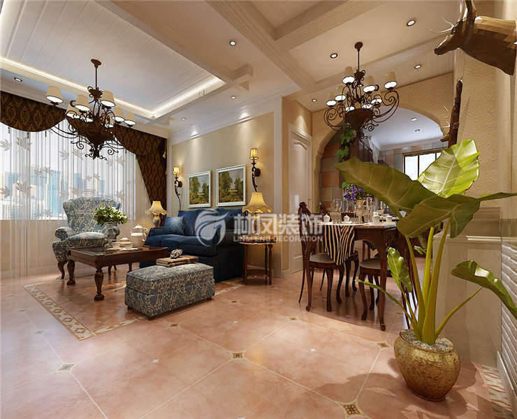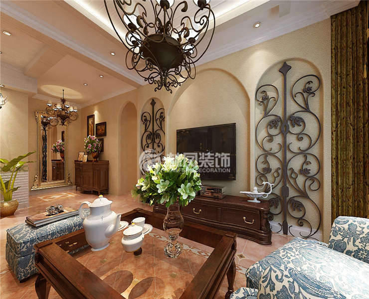 客廳主要以暖色調(diào)為基礎(chǔ),墻面是使用最環(huán)保的硅藻泥,背景墻較為經(jīng)典的石膏板造型和鐵藝相結(jié)合,構(gòu)造出不同的風采,美式田園風格中極具代表性的元素,是從床上用品到沙發(fā)、靠墊等各鐘紡織用品,凡帶有大型或者大面積花卉圖案的都有可能被美國家庭用來裝飾,他們獨有清新的鄉(xiāng)間氣息,只需看一眼,自由奔放,溫暖舒適感受就會躍然心頭。