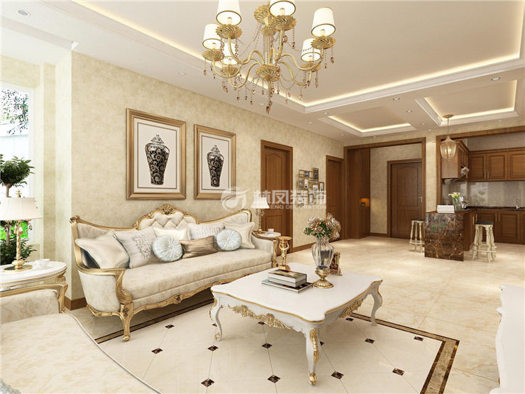 客廳作為家庭生活活動區(qū)域之一,它既是全家活動、娛樂、休閑、團聚、就餐等活動場所,又是接待客人對外聯(lián)系交往的社會活動空間。因此,客廳裝修是整個家庭裝修的重點。 會客區(qū)的沙發(fā)作用很重要,他的造型和顏色會直接影響到客廳的風格。 另一個亮點就是客廳,餐廳過道的吊頂,相互呼應。色彩作為裝飾手段,墻面色彩因能改變居室的外觀與格調(diào)而受到重視。色彩不占用居室空間,不受空間結構的限制,運用方便靈活,最能體現(xiàn)居住者的個性風格。