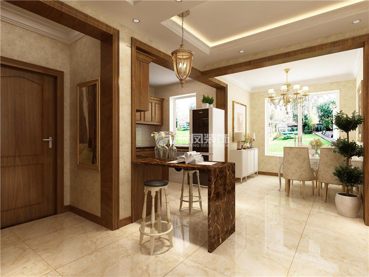 三室兩廳一廚兩衛(wèi),高層整體采用美式風格,色調(diào)以深色為主,體現(xiàn)美式的居家感和溫馨感。