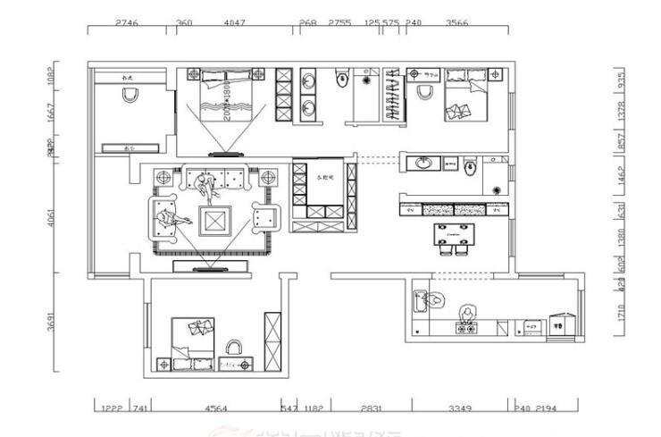三室兩廳一廚兩衛(wèi),高層整體采用美式風格,色調(diào)以深色為主,體現(xiàn)美式的居家感和溫馨感。