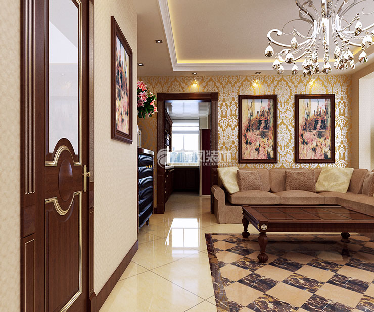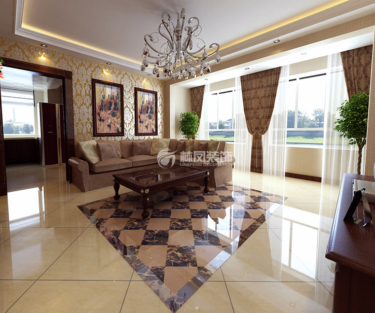 設計理念:本作品采用美式風格,美式風格家居就如同美國獨立精神一般,講究的是如何通過生活經歷去累積自己對藝術的啟發(fā)及對品味的喜好,從中摸索出獨一無二的美學空間。家居自由隨意、簡潔懷舊、實用舒適;暗棕、土黃為主的自然色彩;歐洲皇室家具平民化、古典家具簡單化;家具寬大、實用舒適;地面拼花與頂面吊頂裝飾相呼應,同時采用砂巖,墻布,護墻板裝飾使整個空間更具有美感,讓家庭成為釋放壓力和解放心靈的凈土。