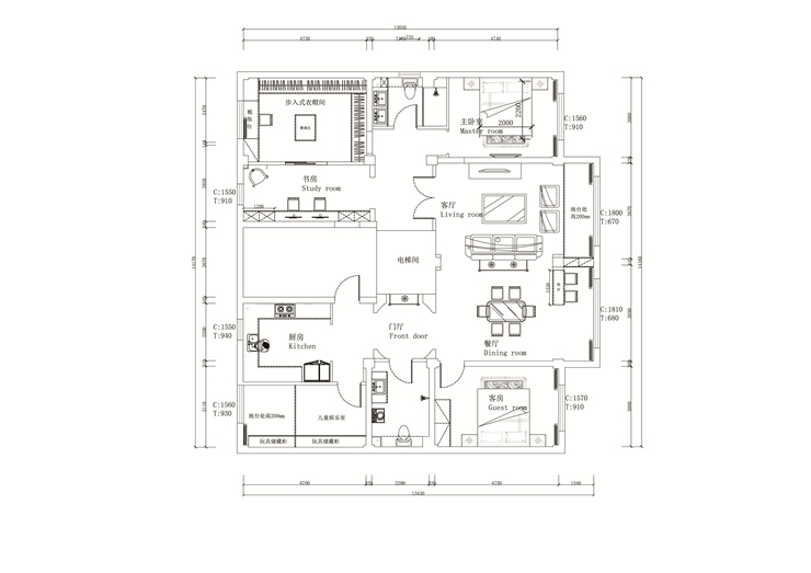獨(dú)立式衣帽間設(shè)計(jì),防塵效果極佳,使儲(chǔ)存空間更加完整,島臺(tái)的放置位置處于整個(gè)空間的中心,保證了兩個(gè)人可是同時(shí)自由行走。