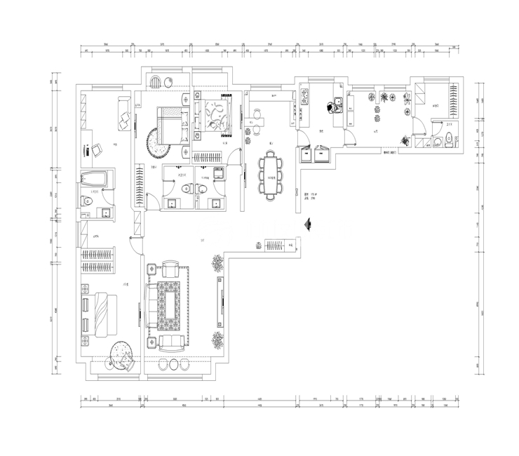 三室兩廳一廚兩衛(wèi),高層整體采用美式風格,色調以深色為主,體現美式的居家感和溫馨感。