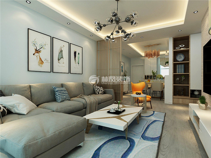 以個(gè)性為主題的客廳,以硅藻泥為主題的電視背景墻在高級(jí)灰的沙發(fā)的映襯下,更加與眾不同,淡藍(lán)雅致沙發(fā)墻面與極簡(jiǎn)的直棚相融合。使得整個(gè)空間更加從容自在而不失家的溫馨。