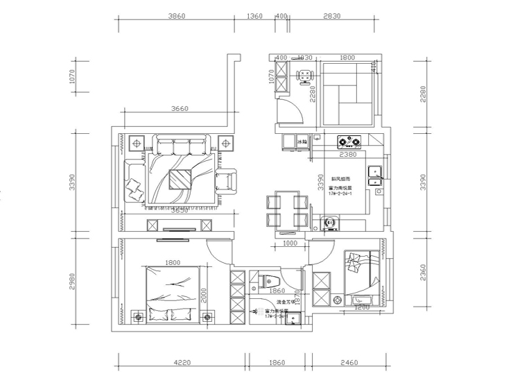 三室兩廳一廚兩衛(wèi),高層整體采用美式風格,色調以深色為主,體現(xiàn)美式的居家感和溫馨感。