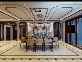 當(dāng)前位置: 首頁 > 裝修案例效果圖 > 新中式,四居,300㎡以上,餐廳