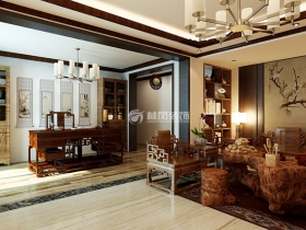設(shè)計(jì)師整體設(shè)計(jì)說(shuō)明:說(shuō)出新中式的第一感覺(jué)就是紅檀木,讓人沉穩(wěn)的氣息。首先讓人熟悉的就是線條屏風(fēng)等等一系列有代表的東西。