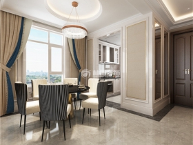 本案以簡潔明快的設(shè)計風格 打造了一個對比強烈,質(zhì)感鮮明的現(xiàn)代居住空間,主要以墨綠色為主色調(diào),在地面,廚房等位置大量使用,優(yōu)雅且時尚。吊頂?shù)脑O(shè)計更是以簡單且有創(chuàng)意的造型處理,區(qū)別于普通常見的邊棚造型,既滿足了功能使用,又不失簡潔大氣。增添了空間的層次感,更使燈光多元化。