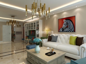 本案以現(xiàn)代簡潔明快的溫馨色調(diào)為主。首先將總體色調(diào)設計定位于明快的淺黃色,客廳地面主要以個性的暖色瓷磚,在原本平淡的空間中,又增加溫馨色感,讓整體空間塑造明快的氛圍。