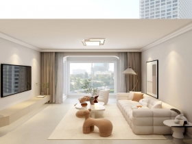 整體設計理念:本案以奶油風設計為中心點,質地溫馨,色彩甜美,以細膩的奶油色為主線,詮釋了一種溫和簡約的生活方式。