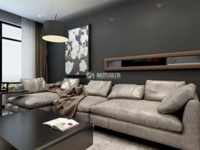 房間整體顏色以黑灰色為主,加入一些鏡面元素。電視背景墻結(jié)合玄關(guān)鞋柜作為一個整體,增大儲物空間。