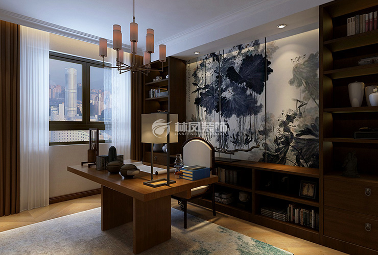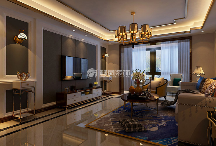 三室兩廳一廚兩衛(wèi),高層整體采用美式風格,色調(diào)以深色為主,體現(xiàn)美式的居家感和溫馨感。