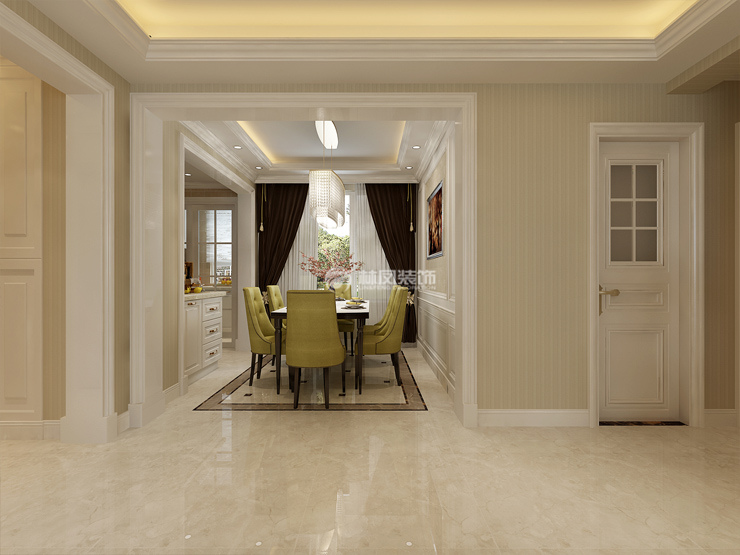 設(shè)計理念:碧桂園銀河城天墅120平3居室林鳳裝飾的為簡約美式風(fēng)格,在整體色調(diào)上清新典雅。