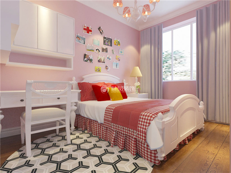 翰林世家94平2居室簡美風(fēng)格林鳳裝飾的女兒房采用了公主粉的壁紙,搭配造型豐富的兒童床,充足的定制產(chǎn)品來滿足儲物空間,定制書桌滿足了學(xué)習(xí)需求,其余的空間都留給孩子來嬉戲玩耍,幾何紋案的地毯,隨意散落的家具,連藝術(shù)品也是通過極具創(chuàng)意的方式來布置呈現(xiàn),留給空間讓其盡情彰顯孩童的天真與爛漫。