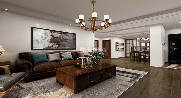三室兩廳一廚兩衛(wèi),高層整體采用美式風格,色調(diào)以深色為主,體現(xiàn)美式的居家感和溫馨感。